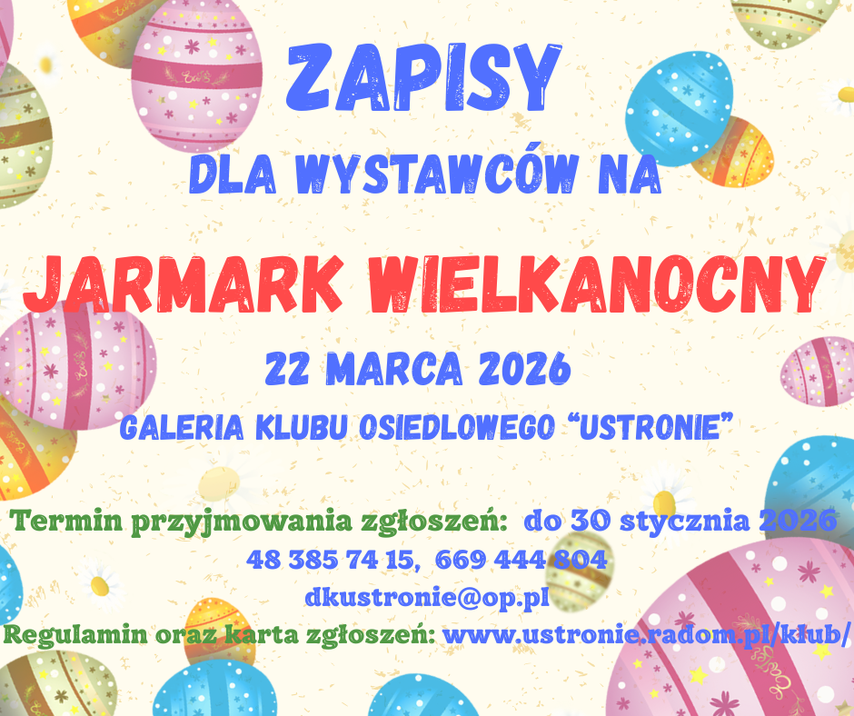 Zapraszamy wszystkich – małych i dużych na Jarmark Bożonarodzeniowy. Już 7 grudnia w Galerii Klubu Osiedlowego „Ustronie” w godz 12.00 – 17.00 będzie można przyjść i zaopatrzyć się w ozdoby bożonarodzeniowe, kartki okolicznościowe i...